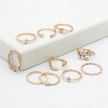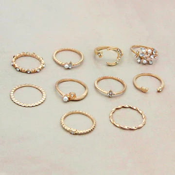 Bohemian Fashion Star Moon Love Pearl Leaf 10-Piece Ring