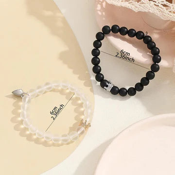 Fashion Jewelry 2pcs Handmade Crown Beaded Charms Bracelet Luminou Heart Glow In The Dark Couple Bracelet For Lover Men Women Fluorescent Gift