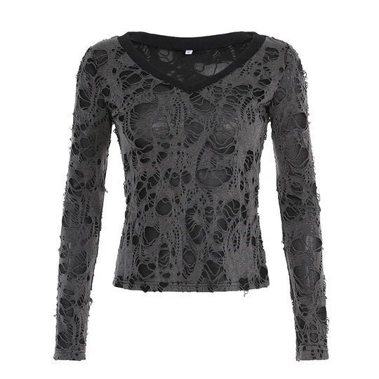 T-shirt Shoulder Personality Slim Fit Hot Girl Long Sleeve