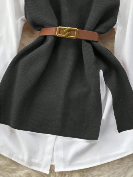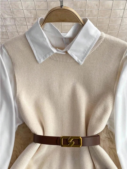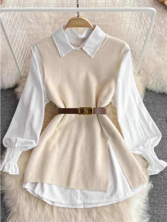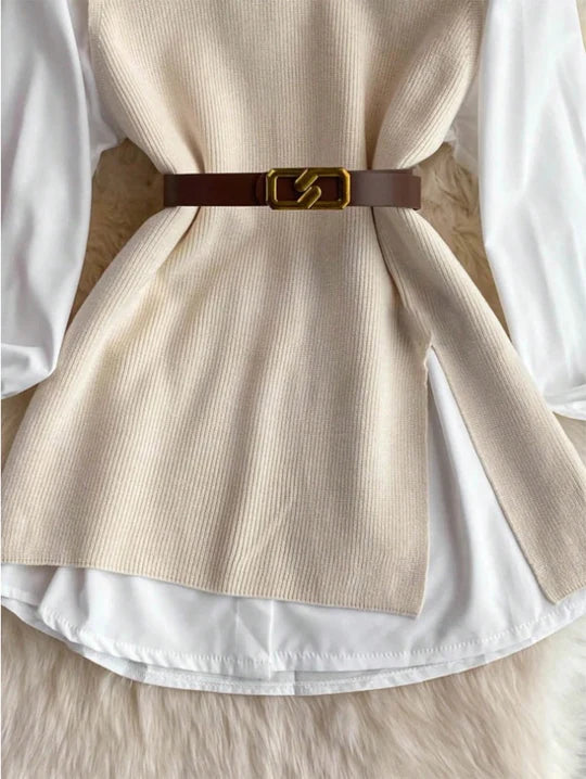 Women Vintage Apricot Split Hem Rib Knit Vest