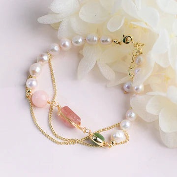 Women's Natural Freshwater Pearl Strawberry Crystal Bracelet